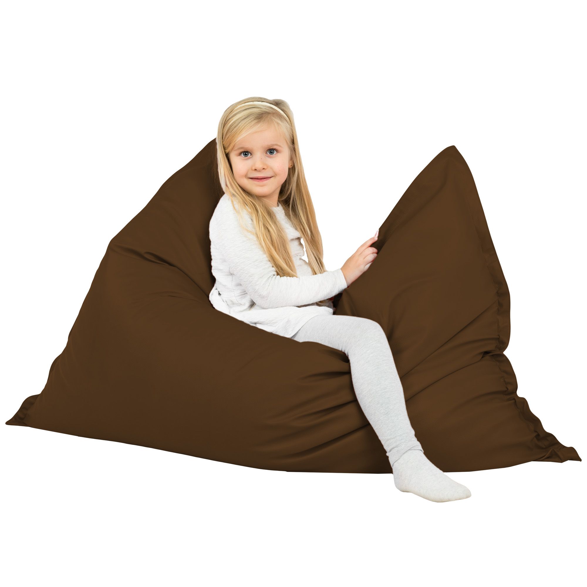 Le tonalità del marrone nobile sono di moda ormai da alcuni anni. Per questo cuscino gigante in ecopelle per bambini in colore marrone scuro è adatto a qualsiasi ambiente. Cuscino gigante per sedersi e sdraiarsi è mobile funzionale e confortevole che vi servirà ogni giorno.
