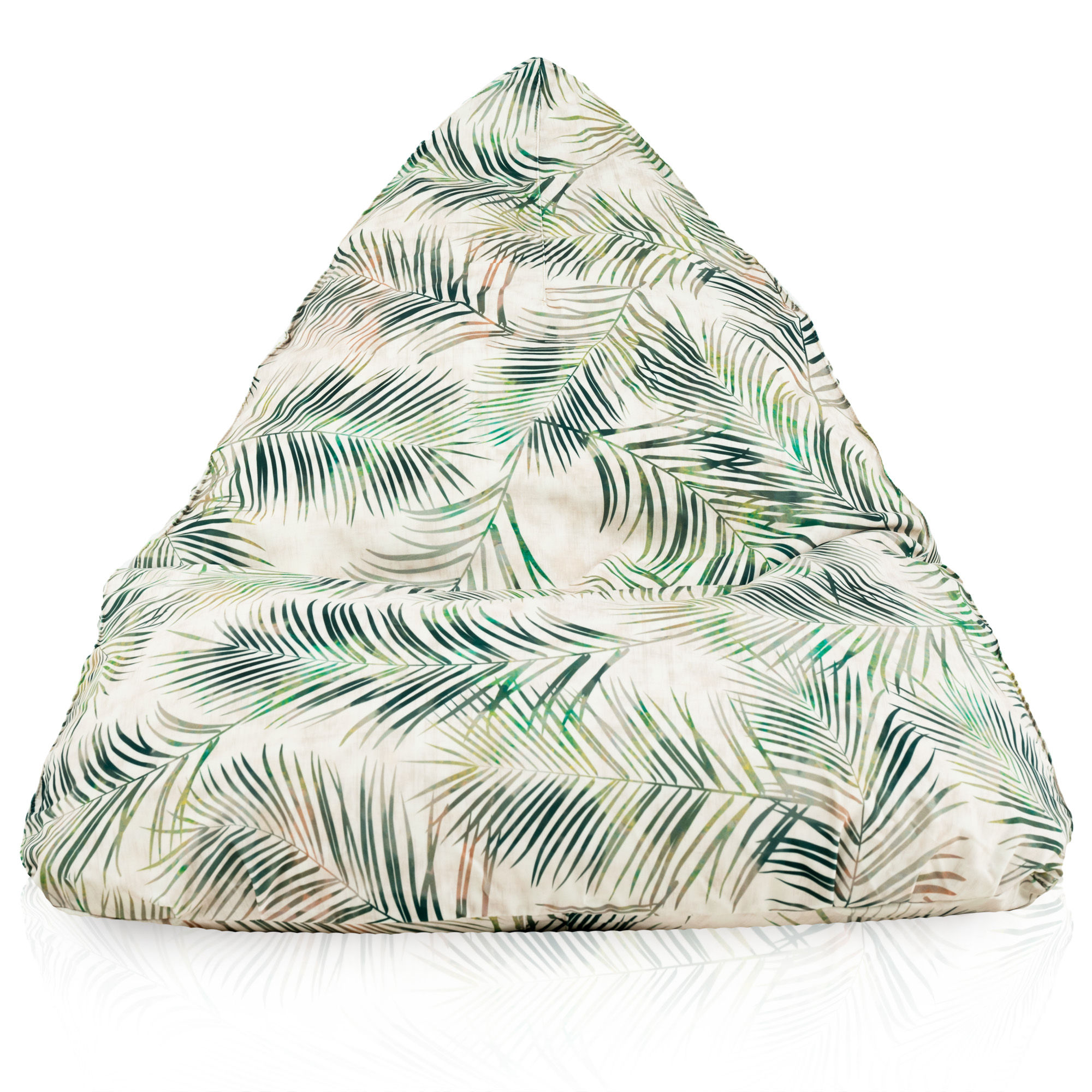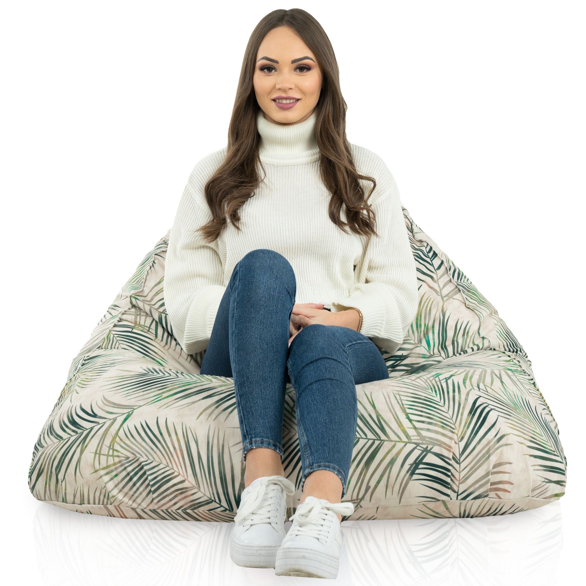 Poltrona sacco Bermuda Botanic ha la fantasia naturale che recentemente è in voga. La fantasia dei fogli di palme crea in qualsiasi ambiente atmosfera alludente a estate e vacanze come se ci fosse in zone esotiche. La poltrona sacco è perfetta per interni arredati in stile scandinavo perché allusioni alla natura sono caratteristiche per questo stile.
